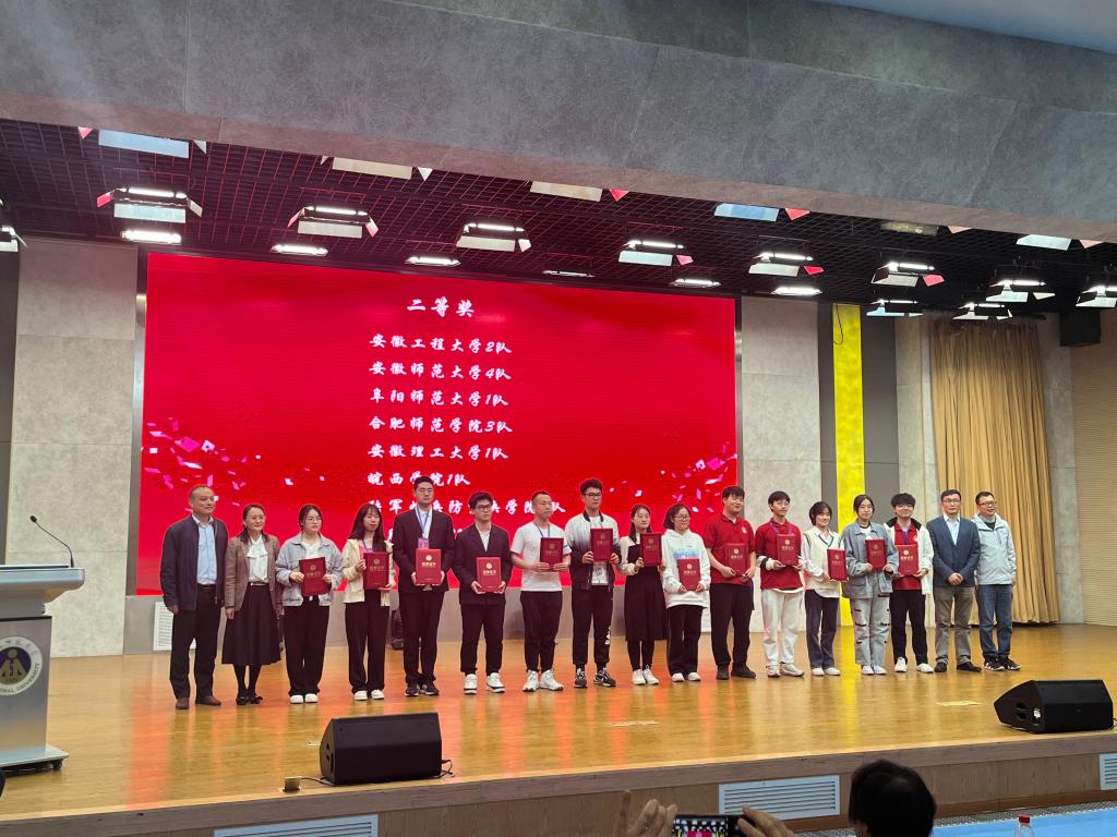 4月28-29日,由安徽省教育厅主办、安徽师范大学和安徽省物理学会承办的2023年安徽省大学生物理学术竞赛在芜湖成功举行。本次竞赛共吸引了来自包括中国科学技术大学、合肥工业大学、安徽大学在内的21所本科高校52支代表队参加。我校5名学生组成的代表队在比赛中沉着冷静,奋力拼搏,经过辩论、评委老师询问等环节,喜获省赛二等奖的佳绩。