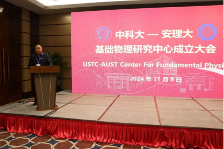 张平松发表了热情洋溢的致辞。他代表学校向莅临大会的各位专家学者表示衷心感谢和热烈欢迎,对中心的成立表示祝贺,预祝中心在未来的工作中取得丰硕成果。他强调,中科大-安理大基础物理研究中心的成立是学校响应国家战略和区域发展规划的重要举措,旨在深化科研体制改革、推动学科建设和科学研究、培养高水平人才、促进学科交叉融合、支持学校“双一流”建设的重要平台。期待中心持续聚焦基础物理领域前沿科学问题,汇聚国内外优秀青年人才开展科学研究,提升学校竞争力。