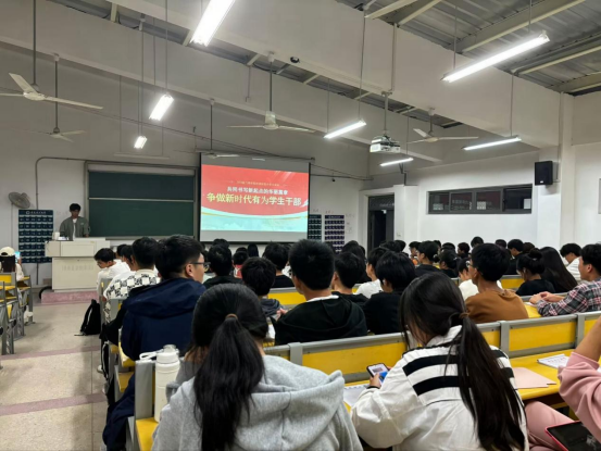 12月4日,邀请大三年级优秀学长董硕、大一年级全体助导在天工北502开展班委经验分享交流会,为全体班级干部开展培训,其中董硕以“争做新时代有为学生干部”为主题,从服务意识、自律意识、协作意识三个层面引导全体班级干部确立服务意识、端正工作动机;