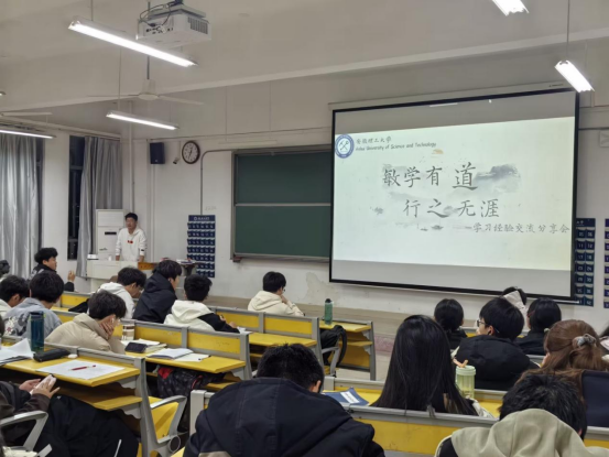 11月30日下午, 邀请大四年级保研至湖南大学的优秀学长崔刘亚在明理北101为大家分享保研经验,崔刘亚向低年级同学深入讲解保研流程及成功经验,进一步帮助低年级学生明晰学术成长路径。他强调平均学分成绩是获得保研资格的重要基础,在日常就要巩固专业知识,同时也强调了科研竞赛经历在推免面试中的重要作用,引导低年级同学积极参加各类学科竞赛。
