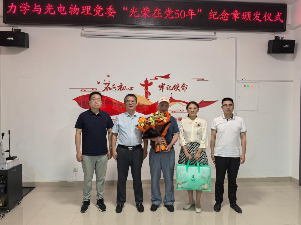 6月30日,力物学院隆重举行"光荣在党50年"纪念章颁发仪式,向为党和教育事业奉献半生的郑传明同志授予荣誉勋章。学院领导班子、师生代表共同见证这一庄严时刻。