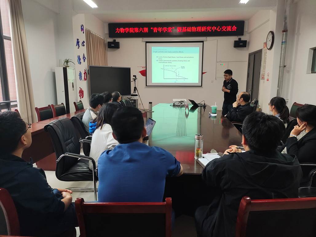 关联相互作用是凝聚态物理最核心的问题,由此诱导出许多新奇的物理现象,如高温超导、分数量子霍尔效应、金属绝缘体转变等,引起研究人员的广泛关注。李伟老师在报告中首先简单回顾了强关联体系的研究历史和方法发展,重点介绍了三维量子电动力学的场论方法在研究相互作用和无序竞争的应用。对他近年来发表于Phys. Rev. B和Phys. Rev. D的一系列工作中半金属体系手征对称性自发破缺产生能隙以及短程四费米子相互作用导致的量子相变的理论研究成果进行了分析总结。报告结束后,参会师生围绕半金属体系的拓扑性质等相关前沿科学问题,进行了深入的讨论和交流。