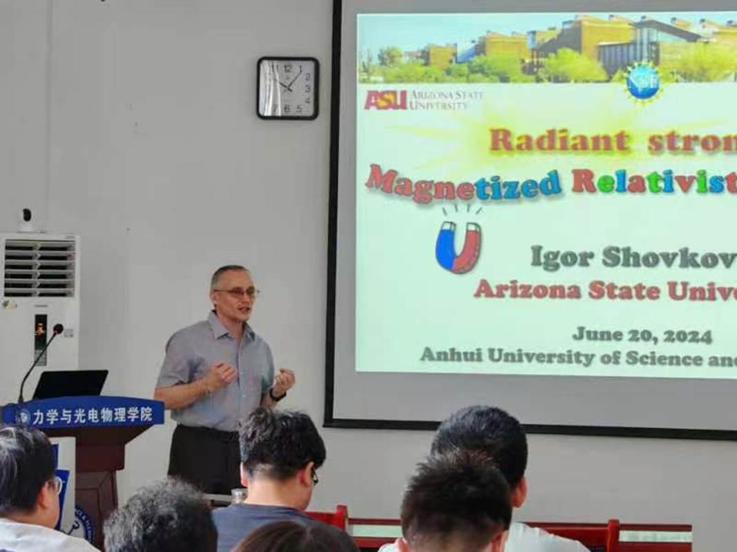 应基础物理研究中心邀请,6月20日上午,美国亚利桑那州立大学Igor Shovkovy教授来中心做学术交流,并作题为《Radiant strongly magnetized relativistic plasmas》的学术报告。本次学术报告同时也是基础物理研究中心正式成立后的第二期特邀报告。报告会在力物学院报告厅举行,力物学院主要负责同志对Shovkovy教授的到来表示热烈欢迎,基础物理研究中心成员及学院部分教师和研究生参加了报告会。