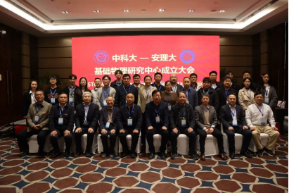 11月8日上午,中国科学技术大学-安徽理工大学(以下简称:中科大-安理大)基础物理研究中心成立大会在合肥市隆重举行,校党委常委、副校长张平松、中国科学技术大学物理学院党委书记周正威出席活动并致辞。校科研部部长刘辉主持大会。中国科学技术大学原副校长、安徽理工大学力学与光电物理学院名誉院长周先意,中国科学技术大学天文与空间科学学院副院长孔旭、物理学院教授韩良、陈向军、林子敬、彭新华、刘建北,安徽理工大学力学与光电物理学院负责人,以及40余名师生代表参加会议。
