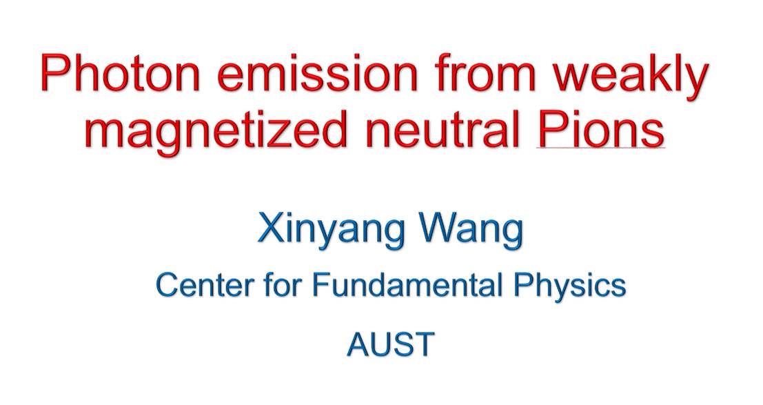 12月9日晚,基础物理中心举行《2025系列学术报告》第十五期,安徽理工大学基础物理研究中心王昕杨就题为“Photon emission from weakly magnetized neutral Pions”做了学术报告。报告会由眭陶陶主持,中心成员及学院部分师生参加了报告会。